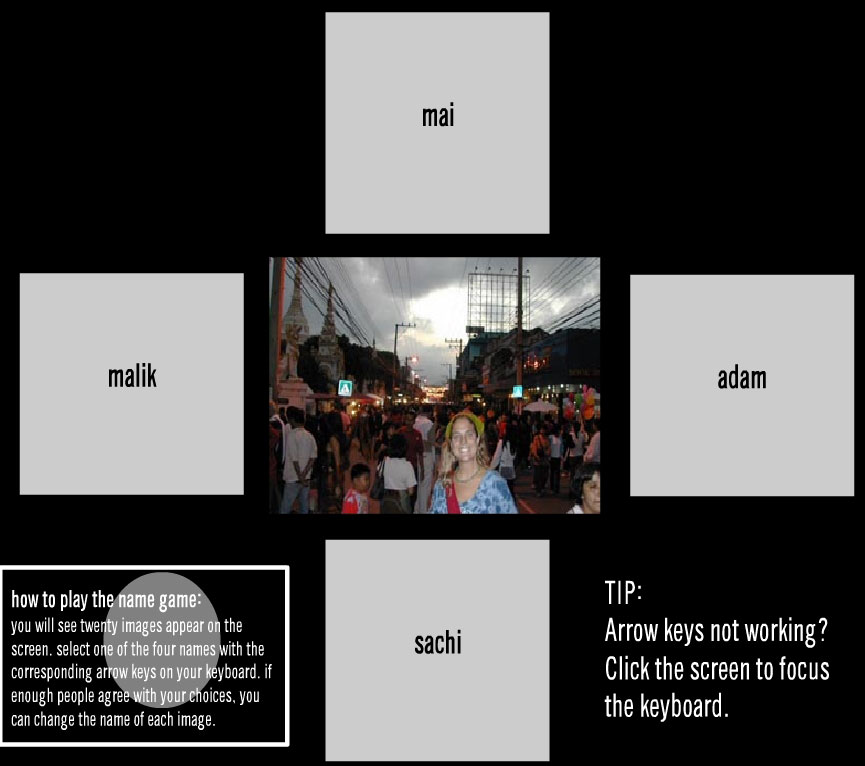 The images used in the Name Game are mined from files made publicly available on the Internet. About the artist